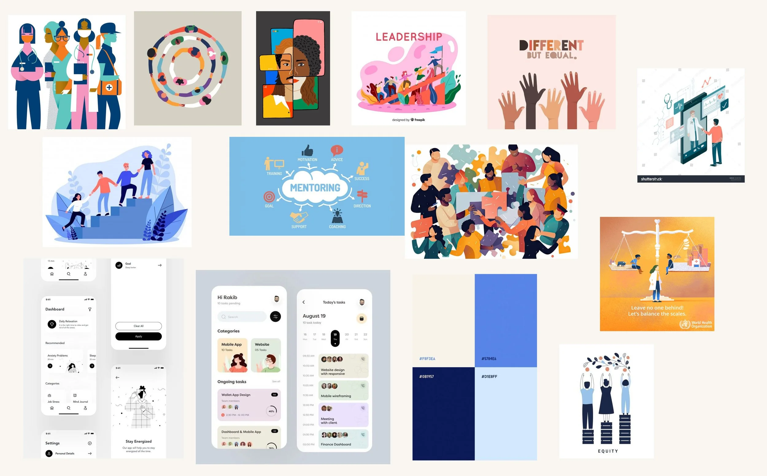 As these are pre-existing pillars of the program, I developed a mood board grounded in those values. Particularly diversity as I wanted it to reflect in the images I selected since it is THE core value of the program and part of the program’s mission of creating a more diverse and equitable nursing workforce.