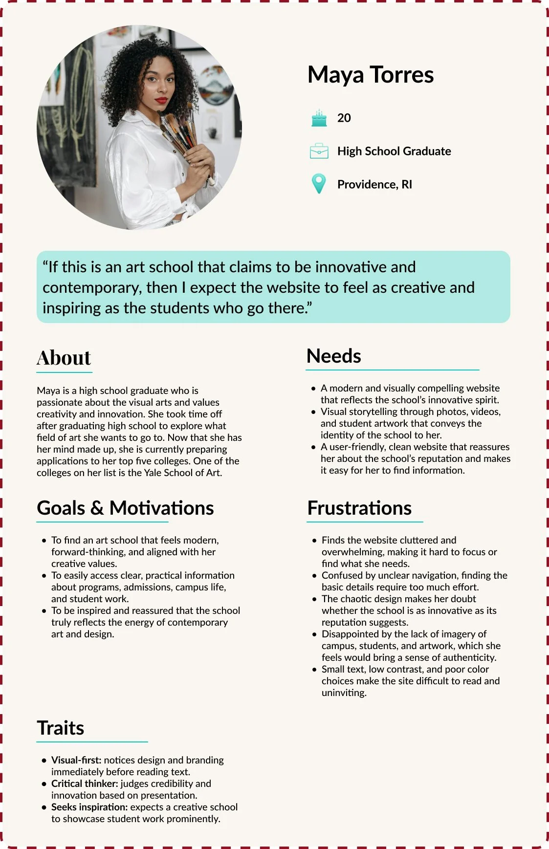 Grounded in the insights from our user personas, it became clear that prospective students face significant challenges navigating the Yale School of Art website.